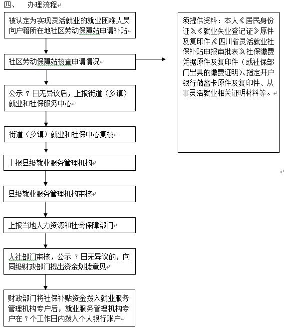 受理通過靈活就業(yè)方式實現(xiàn)就業(yè)的就業(yè)困難人員申報社保補貼資料,審核、撥付靈活就業(yè)社保補貼。